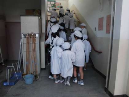 今日は、6年生が一緒に付き添ってくれて給食を運びました。