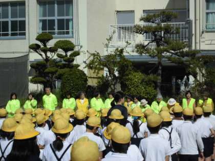 今日は、出来島安全の日ということで、朝から通学路に地域の方々が立って児童の見守りをしていただいていました。