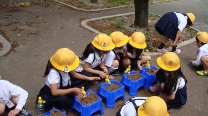 土を入れたり、お水をあげたり、みんな一生懸命にできていました。