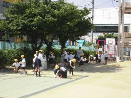 今日はクリンクリンデーといって、みんなで出来島小学校をきれいにする日でした。