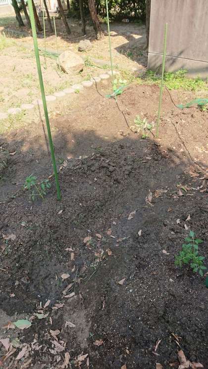 飼育栽培委員会では、学習園の整地をした後に、ミニトマトと枝豆の苗を植えました。