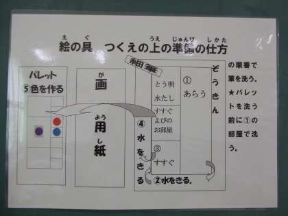 2年生になって初めて図画工作科で使う『絵の具セット!!』皆、ワクワクしながら使いました。