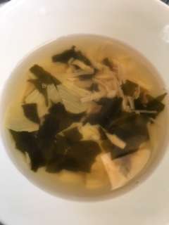 湯葉のすまし汁は、出し昆布と削り節でとった出汁に、たけのこ、わかめ、えのきだけ、の具材を入れて調理しています。