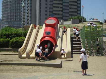 長〜い滑り台で遊んだね。