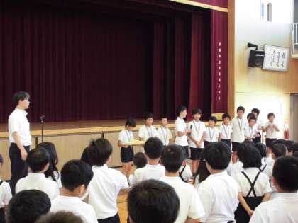 今日の児童朝会で、出来島少年野球チームの表彰がありました。