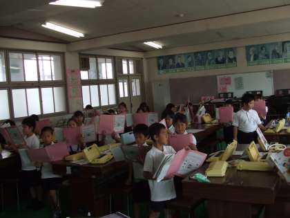 教科書の歌、先生が用意した歌を、曲想に合わせて歌っています。