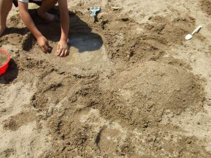 水をかけると、砂が粘土のようになることにも気づいていました。