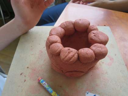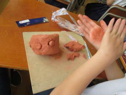 今日、図工の時間に縄文土器を粘土で作りました。ひまわり学級の児童も粘土をこねて上手に土器を作ることができました。