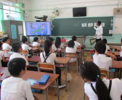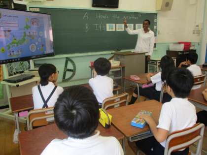 子どもたちは楽しく大きな声で「It's sunny」「It's snowy」などたくさんの天気の表現を学習しました。