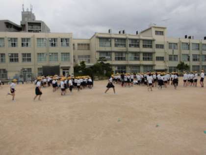 今日は土曜授業で、防災訓練・減災学習を行っています。