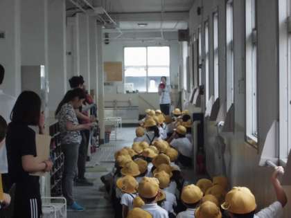 大きな地震の後にやってくる津波を想定して、校舎の3階へ全学年が避難しています。