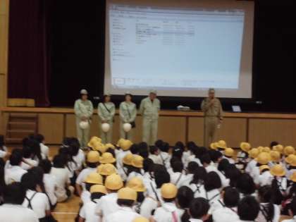 今日の子どもたちの学習のために、出来島地域活動協議会会長を始め地域の防災リーダーの方々、西淀川区役所の方々、西淀川消防署の方々からご協力いただきました。