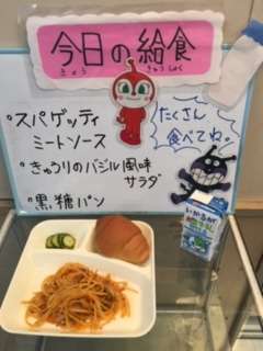 今日の給食は、パン 牛乳 スパゲッティミートソース きゅうりのバジル風味サラダです。