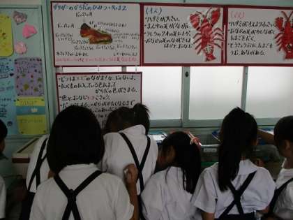教室に連れてきた『ザリガニさん』に皆、夢中です。
