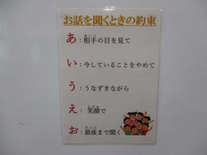 ひまわり学級では、お話を聞くときの約束を守れるように取り組んでいます。全員が授業に集中できる環境を作っていきたいと思います。