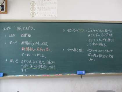今日の科学工作クラブの活動は、新聞を使って“紙てっぽう”を作りました。上手に作れた時には、バンッと大きな音が出てとても楽しかったです。このバンッと大きな音を出すためには、手首のスナップが大切です。この動きはボールスポーツの手首の動かし方にも共通するようです。