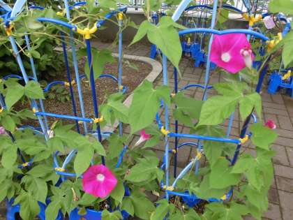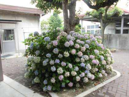 朝から小雨模様のお天気ですが、梅雨の中できれいにアジサイとアサガオが色鮮やかに咲いています。