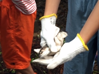 魚は、つるんとすべりますが、上手につかまえることができました。