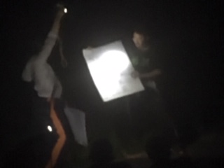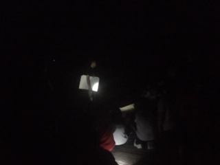 晴れていたら、たくさんの星が見えたはずです。くもり空ですが、星や星座の話を吉本先生からしていただきました。