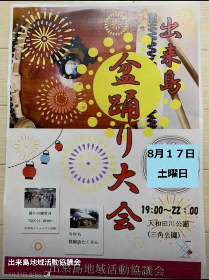 台風の影響による雨や風を考慮し安全に行事を行うため、 盆踊りは8月17日の土曜日だけになるということです。よろしくお願いします。