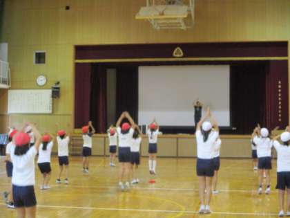 運動会練習が始まりました。毎日、ダンスを覚えるために一生懸命練習に取り組んでいます。とても暑い中練習しているので、必ず多めの水分を持たせてあげてください。また着替えのTシャツ、タオルなども持ってくるようによろしくお願いします。