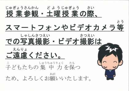 また、授業中の写真撮影、ビデオ撮影もご遠慮ください。