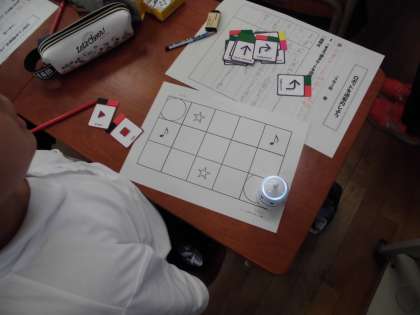 4年生は国語の授業の中でプログラミング学習を取り入れて、説明文の学習をしていました。
