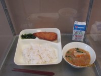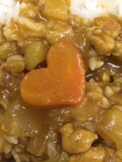 チキンカレーライスのルウは米粉を使っています。たくさんのチキンと、ハート型のラッキーにんじんが入っていました。米粉のルウを使っているので食感がいつもと違いましたがおいしかったです。
