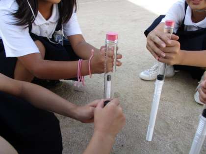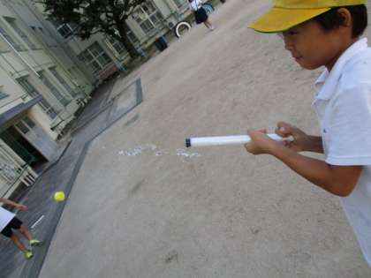 鉄砲に空気をいれて飛ばしたり、水を入れてとばしたり。