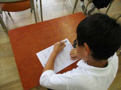 漢字ドリルの練習を毎日頑張っています。漢字を書くときには、ただ書くだけではなく読み仮名や送り仮名、トメ・ハライを意識して書いています。