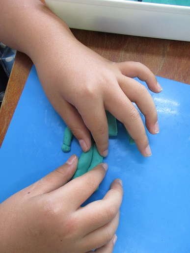 粘土を細く伸ばして、くっつけているよ。何の部分になるのかな?