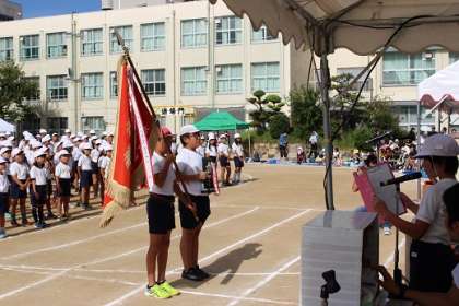 紅白それぞれの代表児童からの力強い選手宣誓がありました。