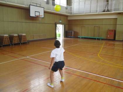 今週のひまわりタイムは、ふうせんやソフトボールを使った運動をしました。ふうせんを落とさないようにボールを受け渡ししたり、ボールを的に当てたりしました。