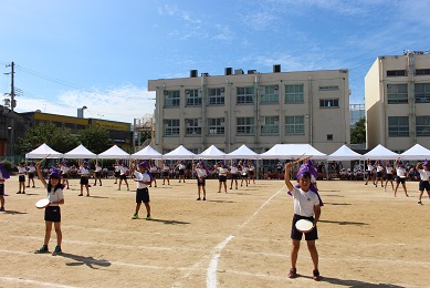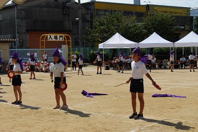パーランクを叩く音が運動場に鳴り響き、沖縄の民謡音楽の雰囲気を感じさせてくれる子どもたちの演技でした。
