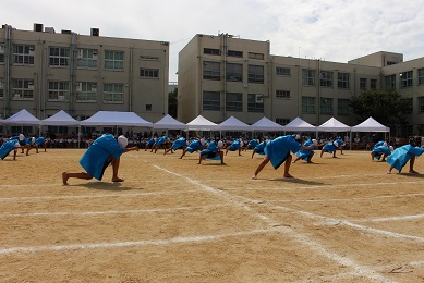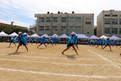 運動会の最後を飾る6年の演技は「ソーラン節」です。