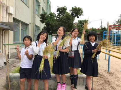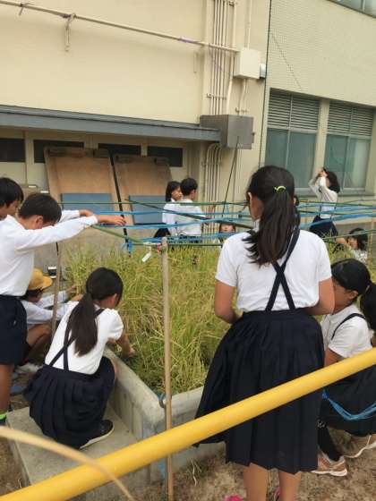 春に植えたお米が収穫できました。スズメよけのネットのおかげか、思っていたより、多くとれました。