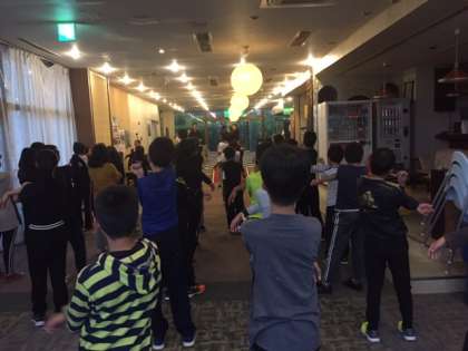 一階のロビーで朝の集いを行いました。