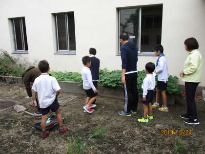今日のひまわりタイムでは、1学期に植えたさつまいもを掘りました。たくさん収穫することができました。