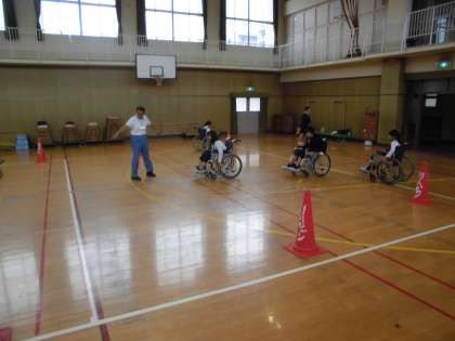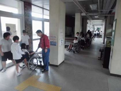 今日は、「大阪市立心身障碍者リハビリテーションセンター」の方々から車いすの乗り方を学びました。