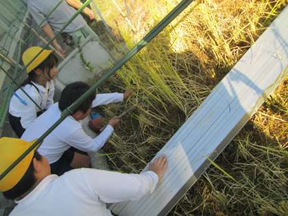 鎌が一つしかないので、全員でハサミを使って刈りました。