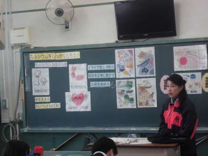 栄養教諭の方に来ていただき、カルシウムのはたらきについて学びました。