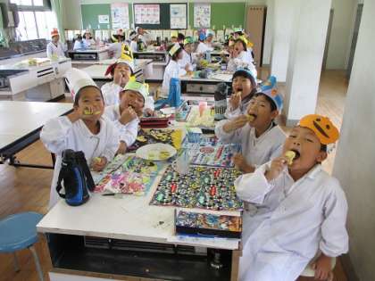 「いただきま〜す。」大きな口を開けて、皆で美味しくお芋を頂きました。ペロッと食べちゃったね。