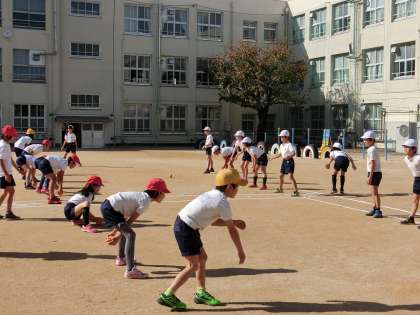 今日は、オリックスから出前授業がありました。現役を引退され、コーチとして活躍している方々からボールの投げ方や、受け方、打ち方を教わりました。その後は、Tボールゲームの試合を行い、とても楽しそうな様子で体を動かしていました。