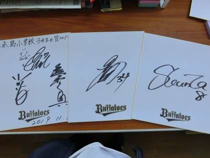 最後に全員で記念撮影をし、サイン入りの色紙までいただきました。子どもたち、とっても喜んでいました。