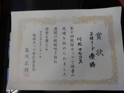 バレーボールで、川北マルコスが、第10回秋桜カップ2位リーグで優勝しました。