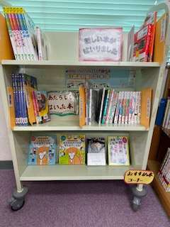 11月に入り、新しい本が入りました。今までの本に加えて、出来島小学校のみなさんに読んでもらえるように、図書館ボランティアの方がおしゃれに並べてくれています。
