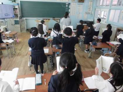 「おとうとねずみチロ」というお話を声に出してみんなで一緒に読みました。