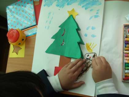今日は、図工で、クリスマスツリーを作りました!