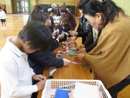 紙飛行機や手裏剣など、色々な折り方を教えて頂きました。