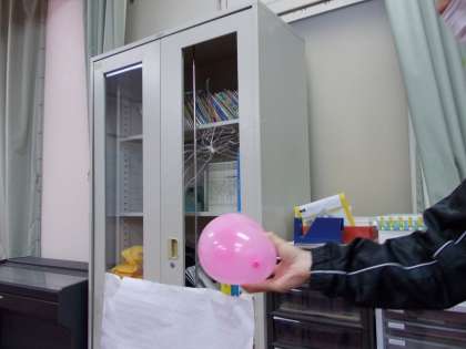 風船とビニールテープを使って、静電気をおこす化学の実験をしました。
